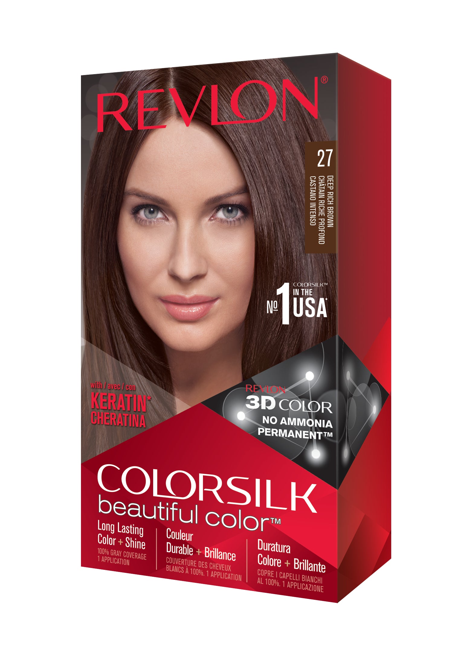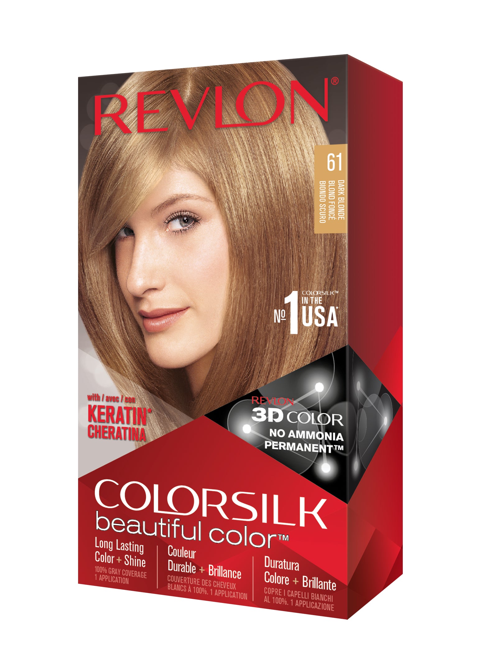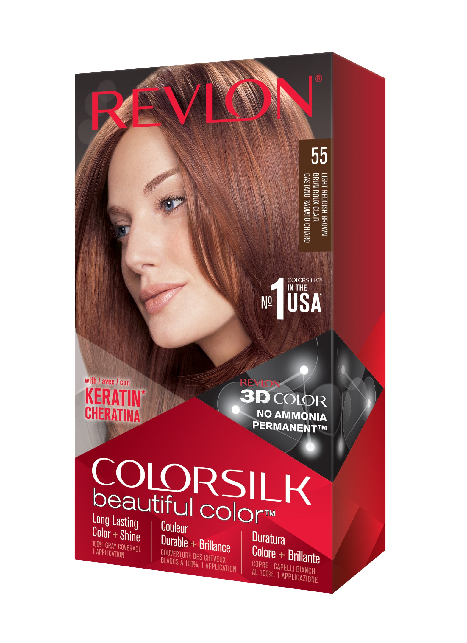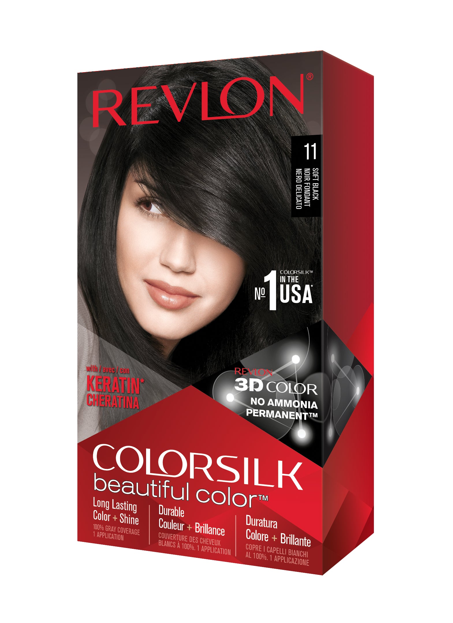 Formulë e re, pa rrëmujë për aplikim të lehtë të bojrave në shtëpi. E njëjta ngjyrë e shkëlqyer e flokëve ColorSilk e dashur nga gratë, tani është bërë edhe më e mirë me nuancat e reja trendi dhe një formulë të re! ColorSilk Beautiful Color™ është marka numër 1 në SHBA*. Ngjyra e flokëve pa amoniak jep 100% mbulim dhe ngjyrë plotshkëlqim të cilësisë së sallonit. Arrini një ngjyrë të pasur dhe të qëndrueshme të flokëve në shtëpi! Flokët lihen të mëndafshtë, me shkëlqim, të shëndetshëm dhe në gjendje më të mirë se përpara se t'i ngjyrosni pas çdo kutie. Revlon's 3D Color Gel Technology™ jep një pamje natyrale dhe ngjyrë shumëtonale nga rrënja në majë, duke ofruar definicion dhe duke rritur dimensionin e flokëve tuaj.