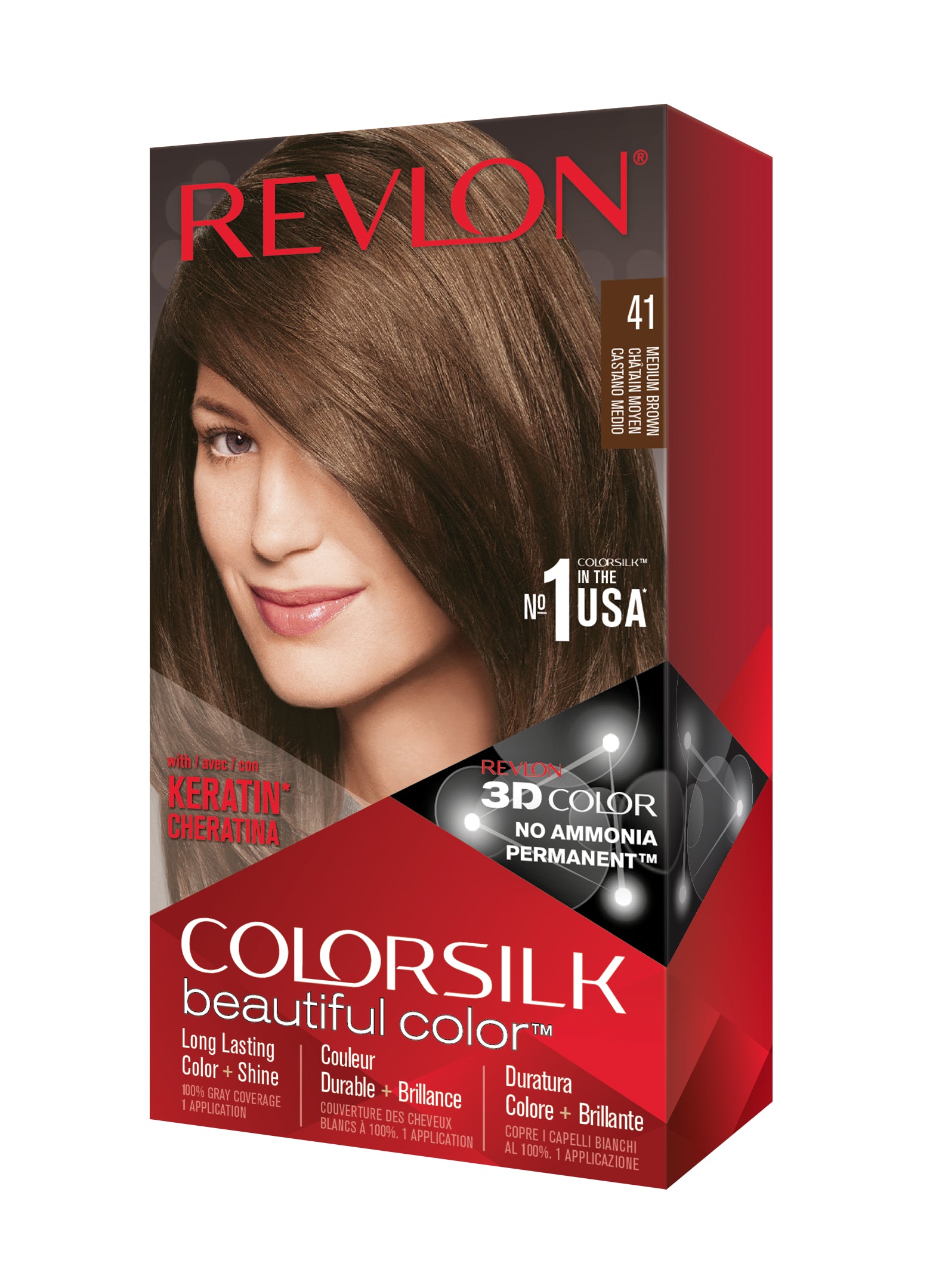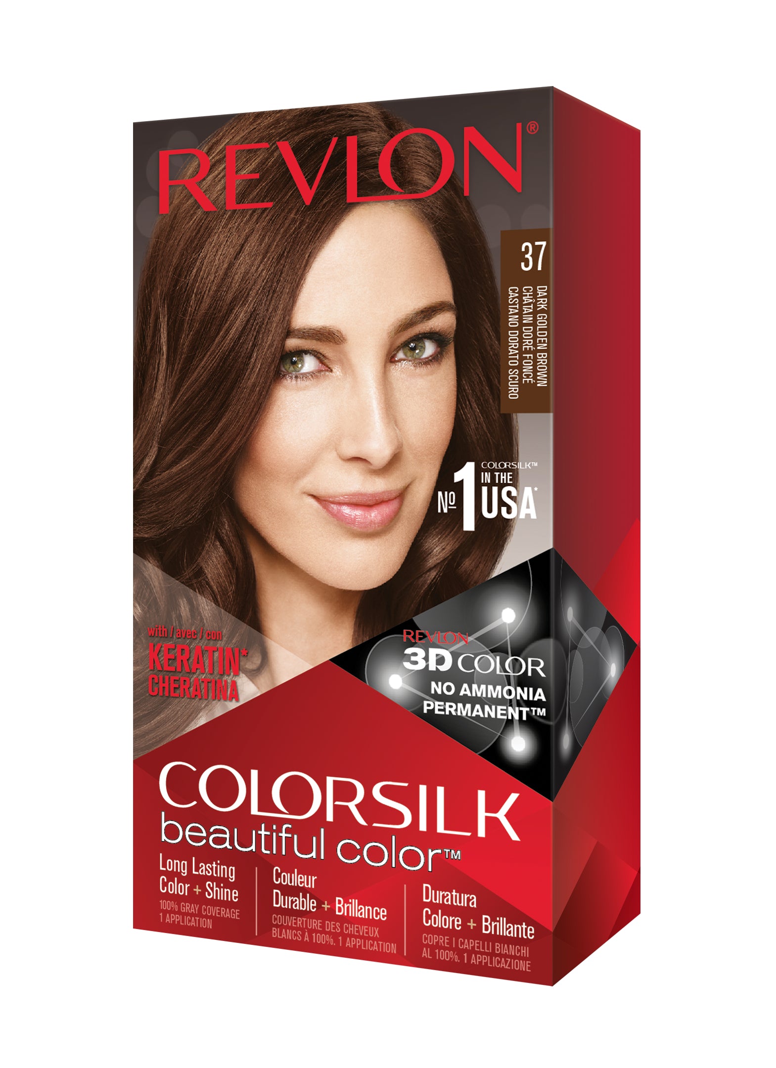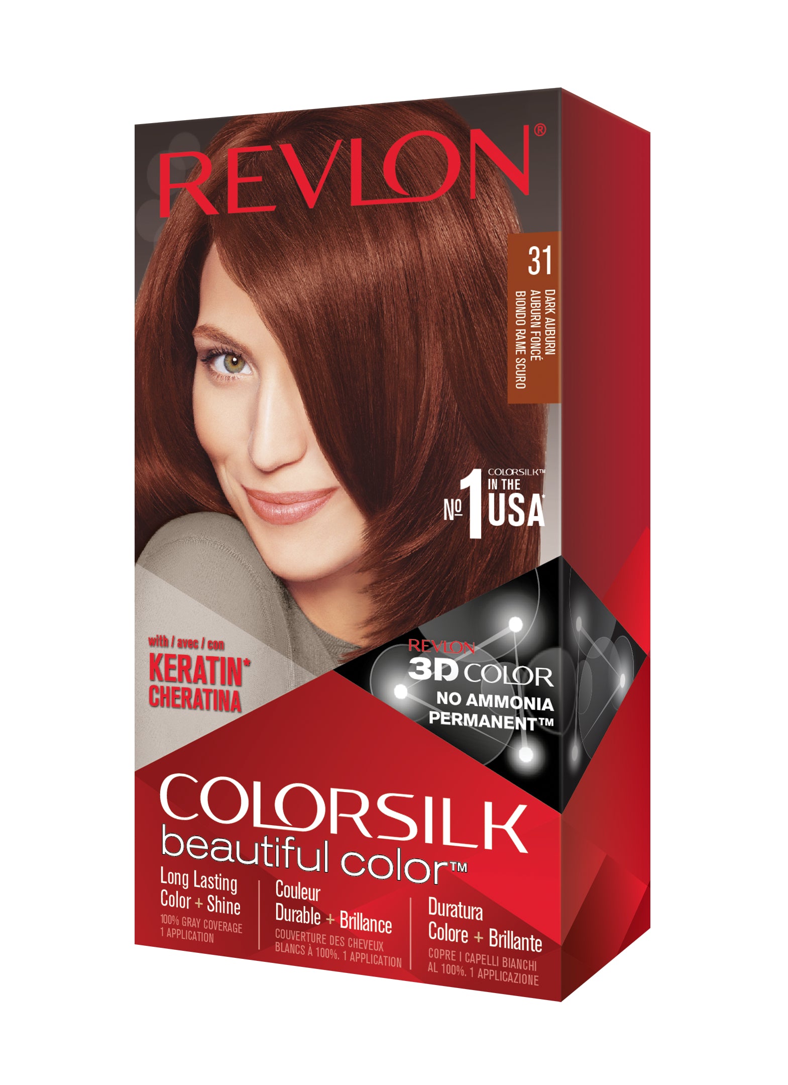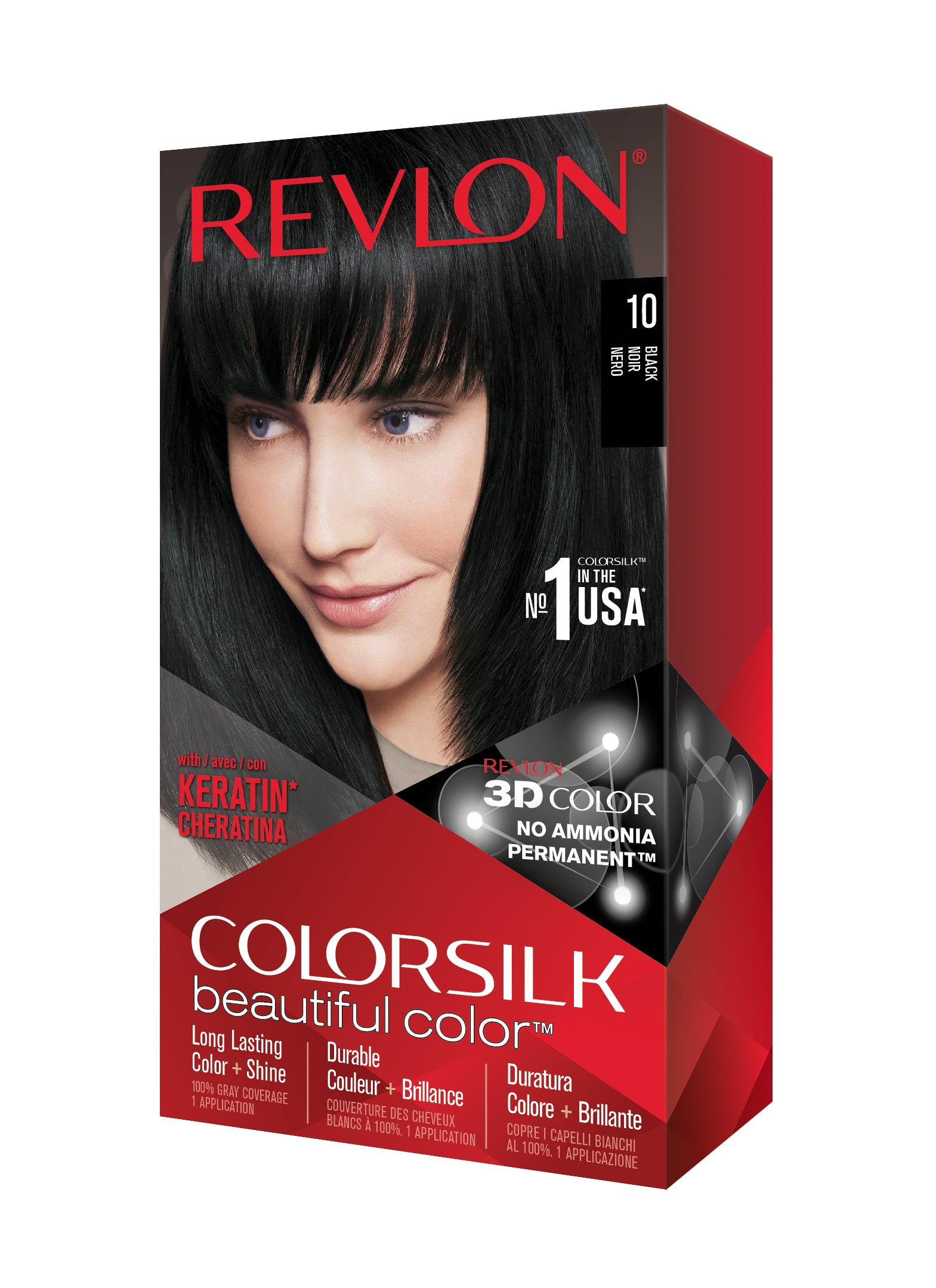 Formulë e re, pa rrëmujë për aplikim të lehtë të bojrave në shtëpi. E njëjta ngjyrë e shkëlqyer e flokëve ColorSilk e dashur nga gratë, tani është bërë edhe më e mirë me nuancat e reja trendi dhe një formulë të re! ColorSilk Beautiful Color™ është marka numër 1 në SHBA*. Ngjyra e flokëve pa amoniak jep 100% mbulim dhe ngjyrë plotshkëlqim të cilësisë së sallonit. Arrini një ngjyrë të pasur dhe të qëndrueshme të flokëve në shtëpi! Flokët lihen të mëndafshtë, me shkëlqim, të shëndetshëm dhe në gjendje më të mirë se përpara se t'i ngjyrosni pas çdo kutie. Revlon's 3D Color Gel Technology™ jep një pamje natyrale dhe ngjyrë shumëtonale nga rrënja në majë, duke ofruar definicion dhe duke rritur dimensionin e flokëve tuaj.