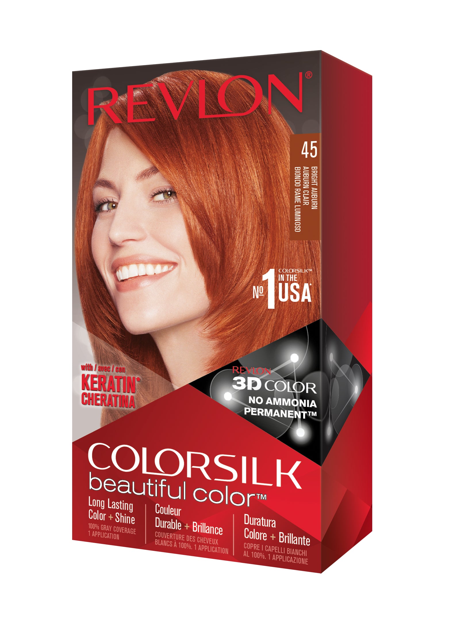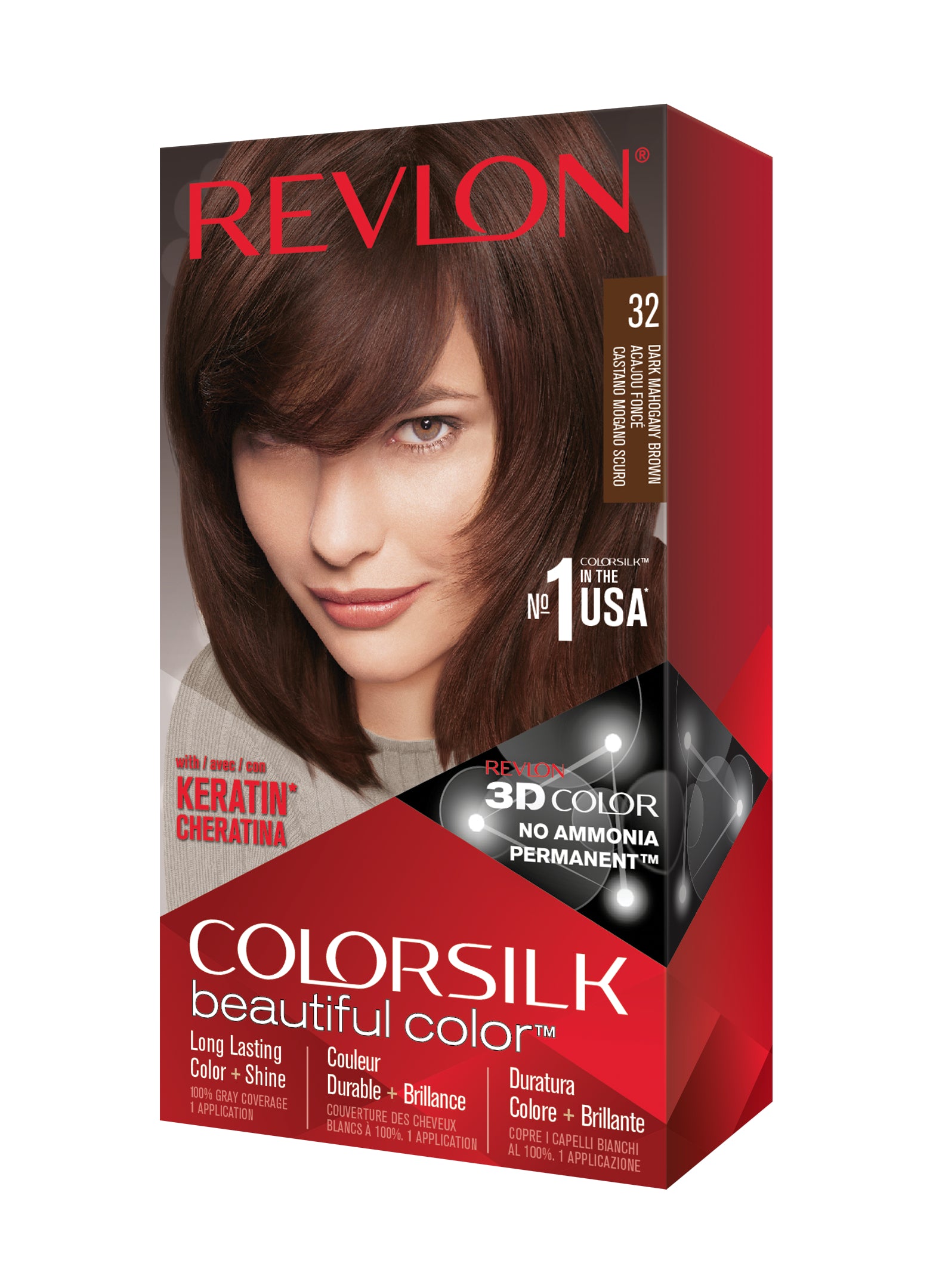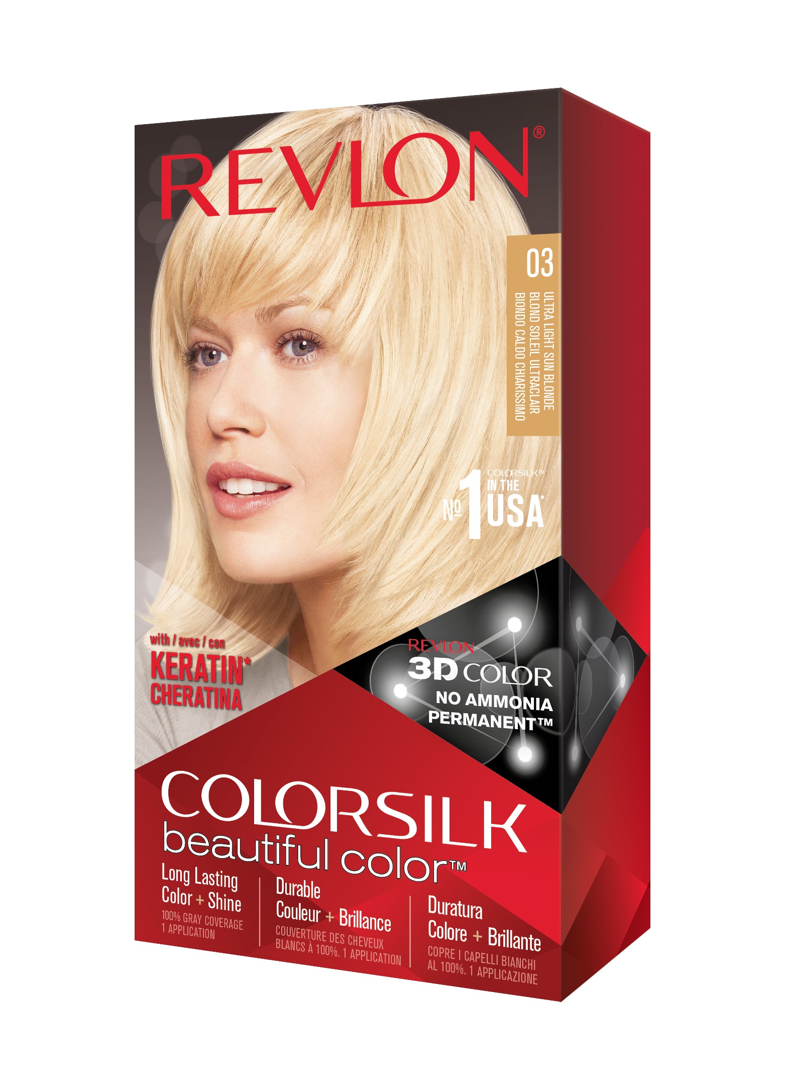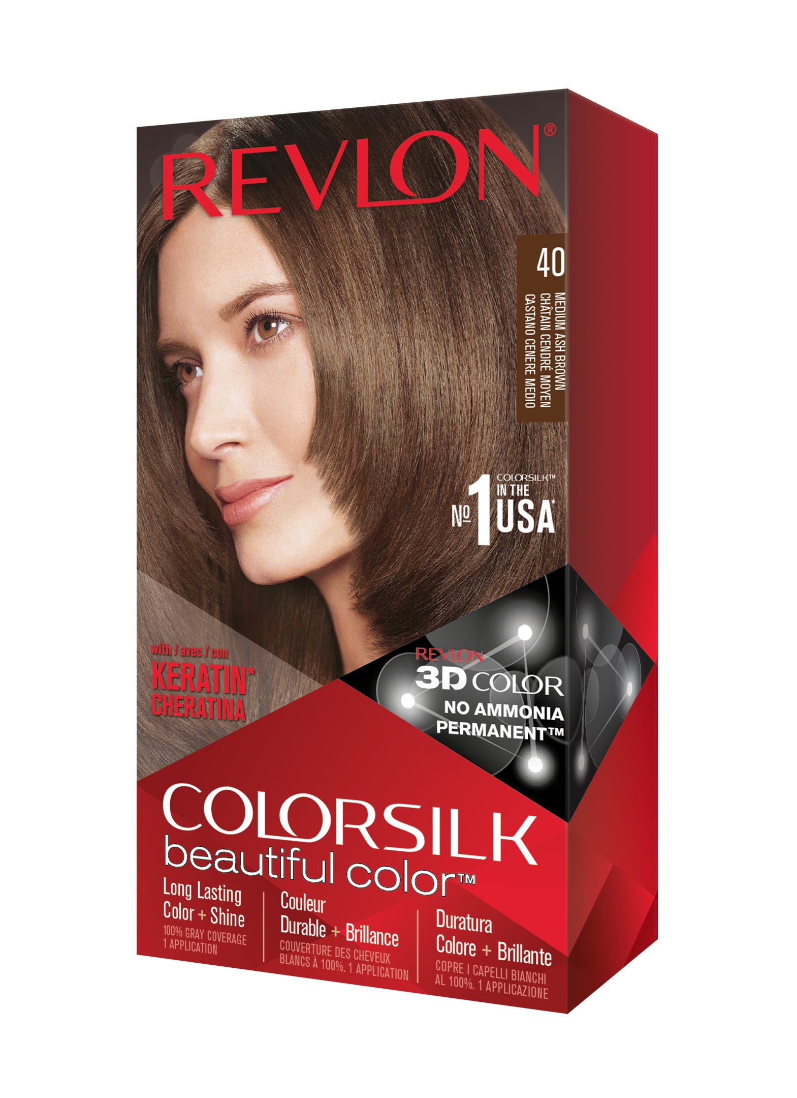 Formulë e re, pa rrëmujë për aplikim të lehtë të bojrave në shtëpi. E njëjta ngjyrë e shkëlqyer e flokëve ColorSilk e dashur nga gratë, tani është bërë edhe më e mirë me nuancat e reja trendi dhe një formulë të re! ColorSilk Beautiful Color™ është marka numër 1 në SHBA*. Ngjyra e flokëve pa amoniak jep 100% mbulim dhe ngjyrë plotshkëlqim të cilësisë së sallonit. Arrini një ngjyrë të pasur dhe të qëndrueshme të flokëve në shtëpi! Flokët lihen të mëndafshtë, me shkëlqim, të shëndetshëm dhe në gjendje më të mirë se përpara se t'i ngjyrosni pas çdo kutie. Revlon's 3D Color Gel Technology™ jep një pamje natyrale dhe ngjyrë shumëtonale nga rrënja në majë, duke ofruar definicion dhe duke rritur dimensionin e flokëve tuaj.